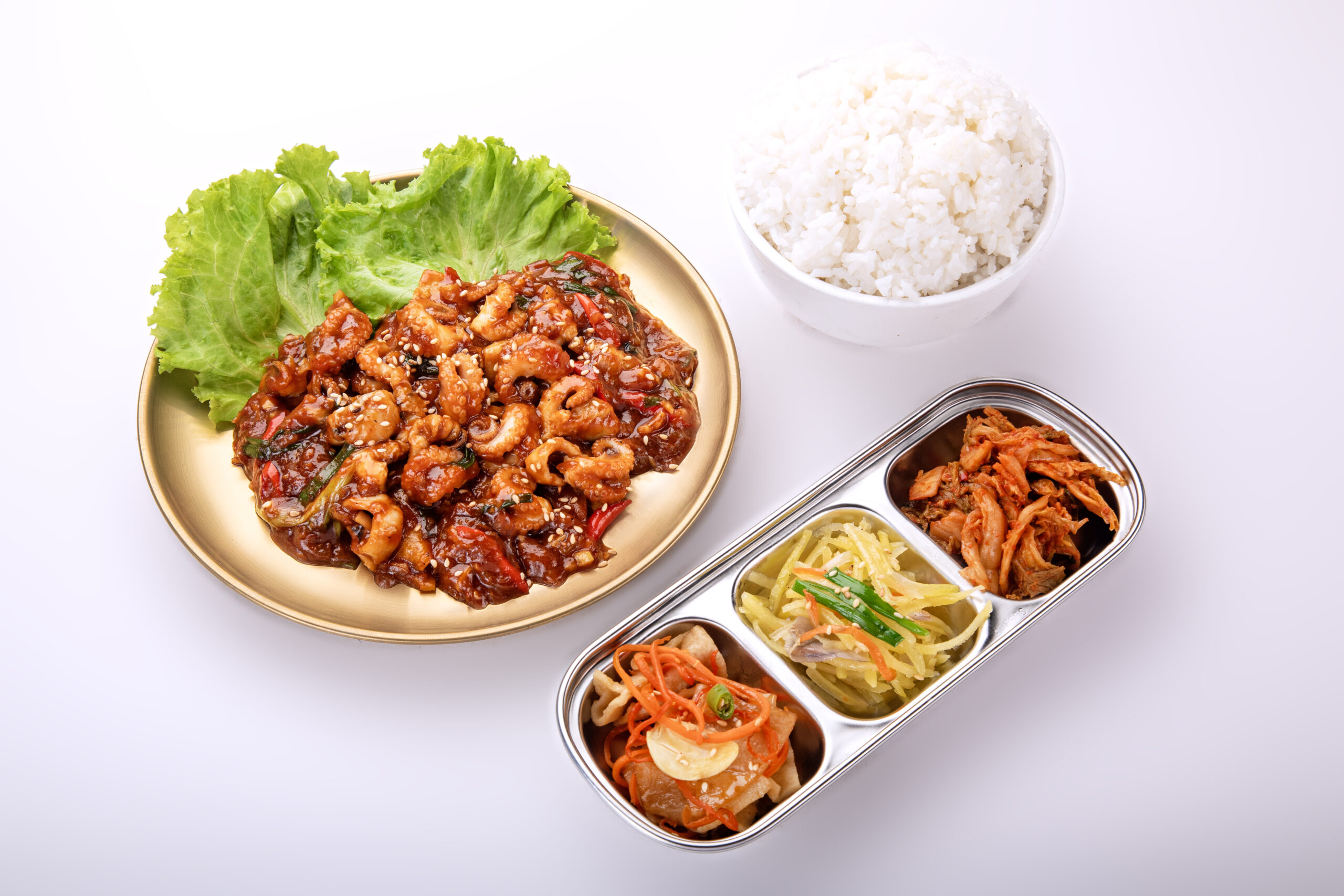 OMUK Spicy Fried Octopus & Rice features fresh octopus stir-fried at high temperatures to capture a smoky “fire flavor” while maintaining a tender texture. Itโs the ultimate comfort food for those who love a bold, spicy kick.