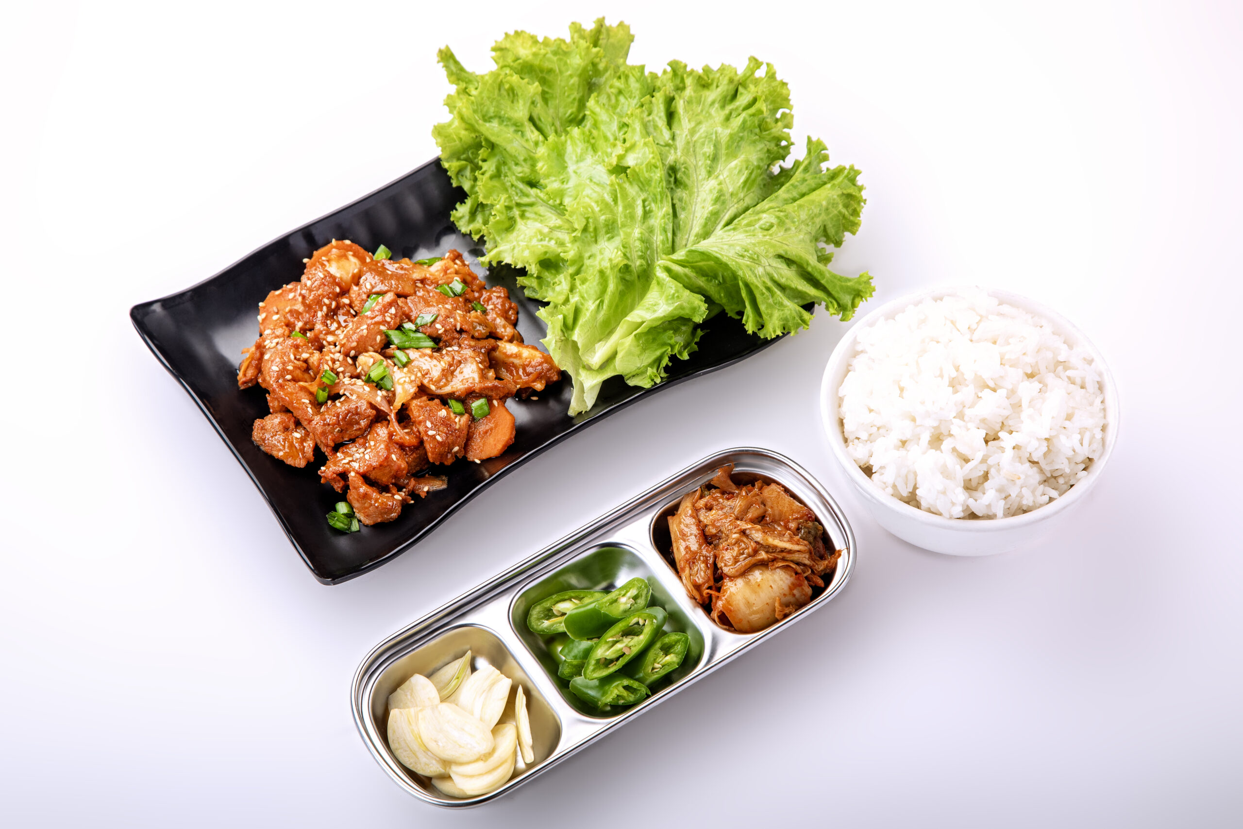 Description: Thinly sliced pork marinated in a bold gochujang (Korean chili paste) sauce and stir-fried to perfection.